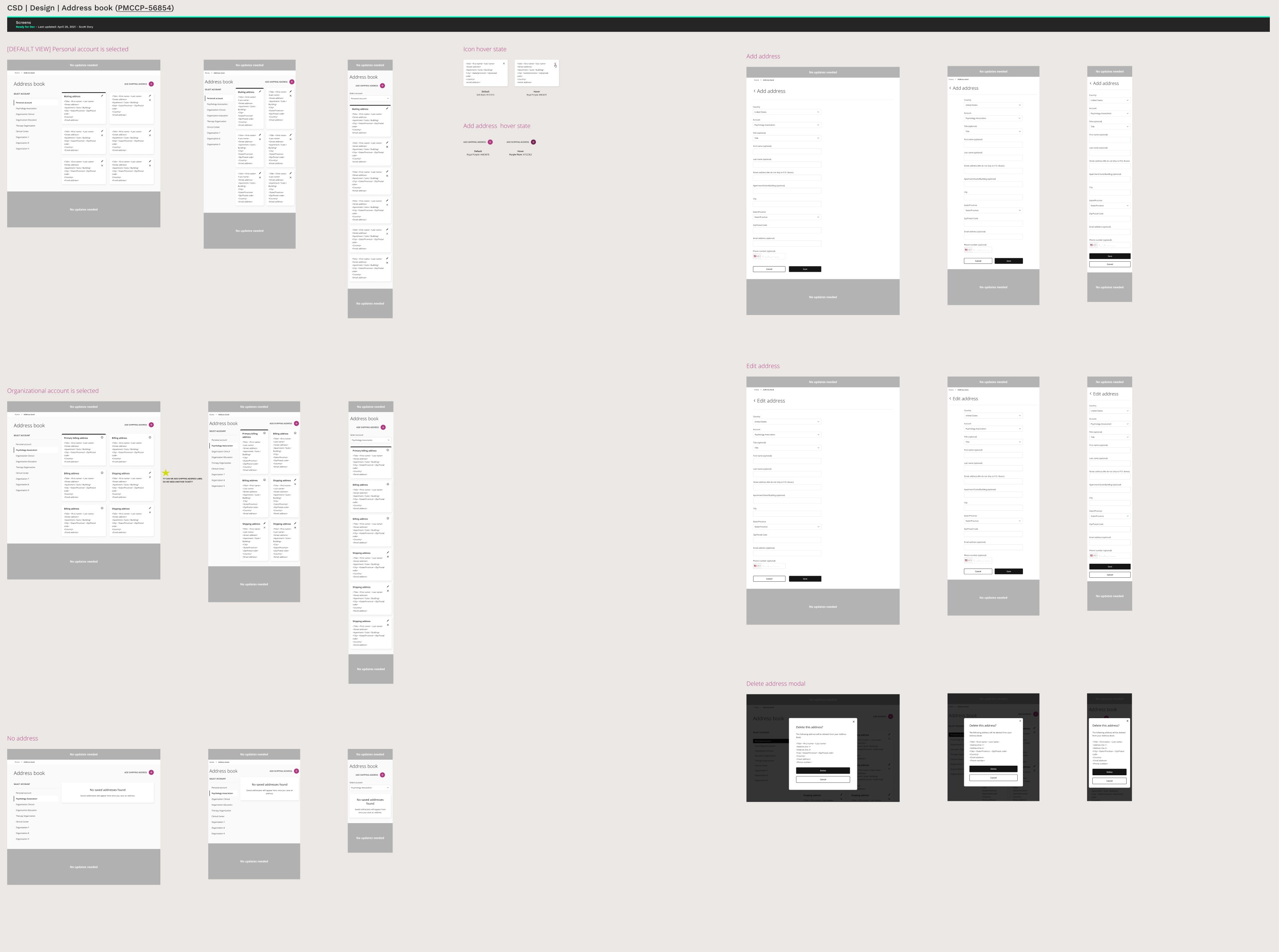 Proposed new templates for Account Information and Address Book with vertical tabs for seamless personal/business switching.