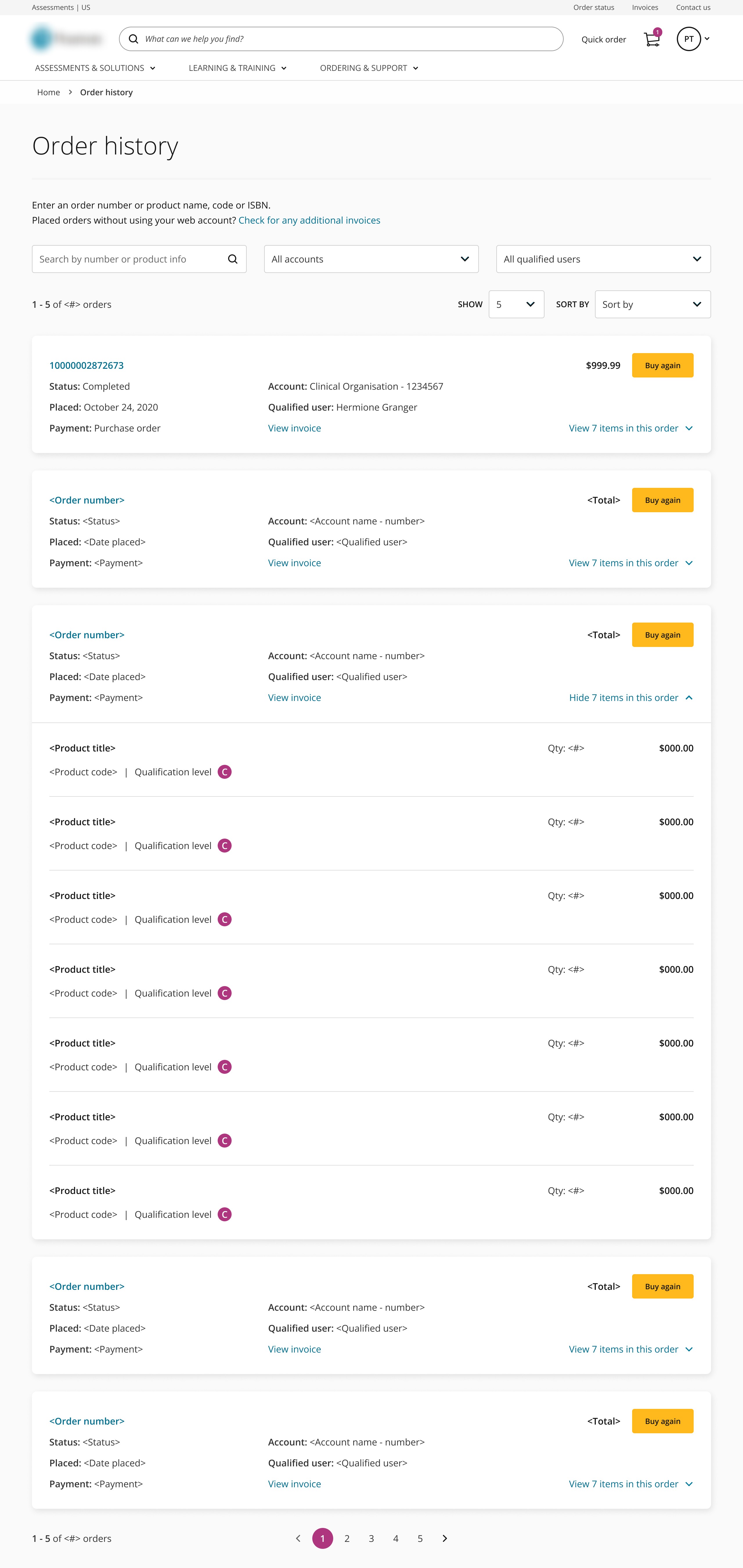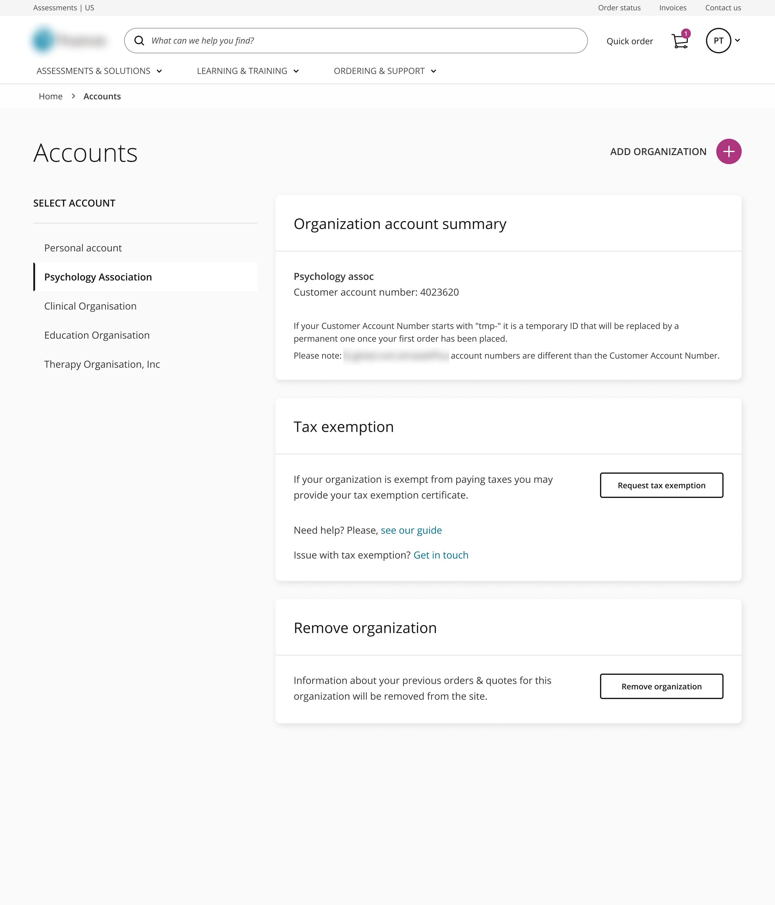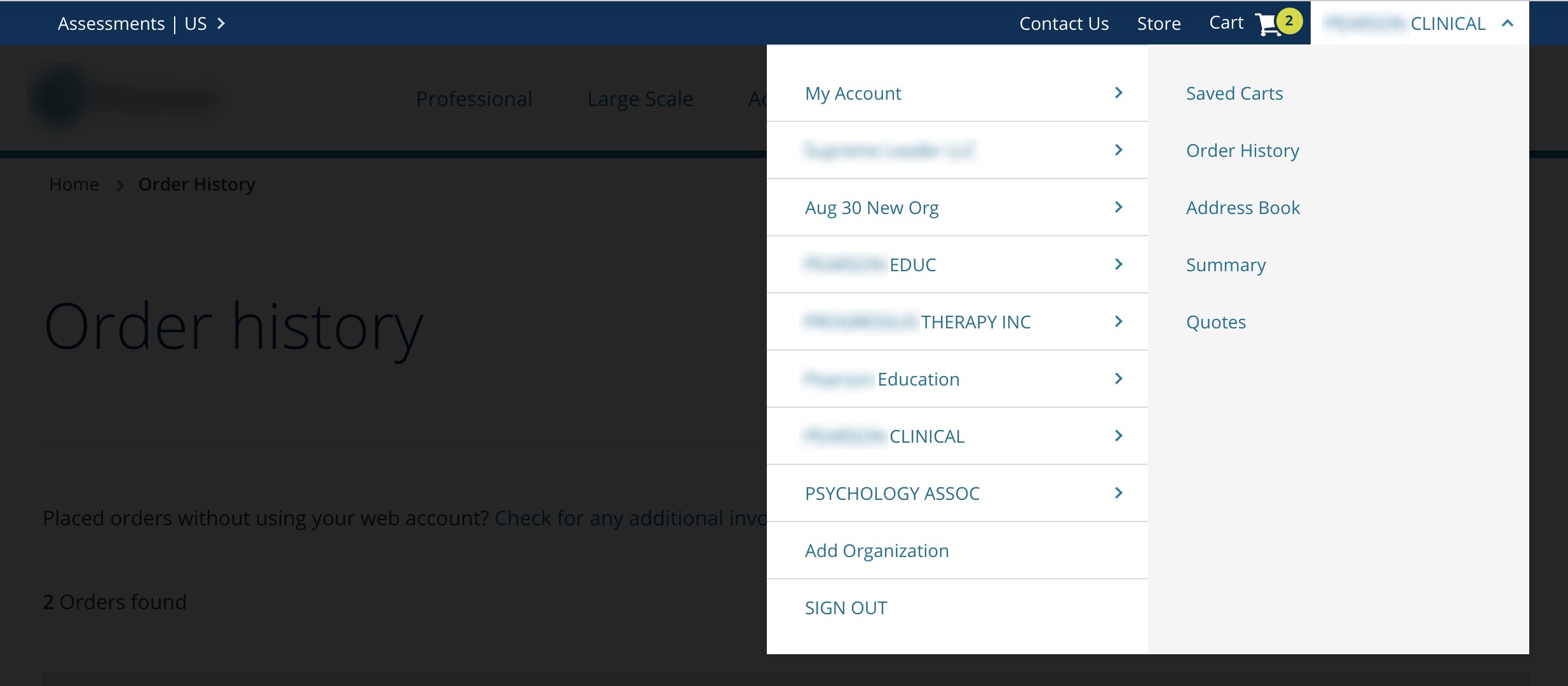Assessments e-commerce supports both B2B and B2C purchases. Users often placed orders under the wrong account, resulting in misplaced order histories and frequent customer support calls.