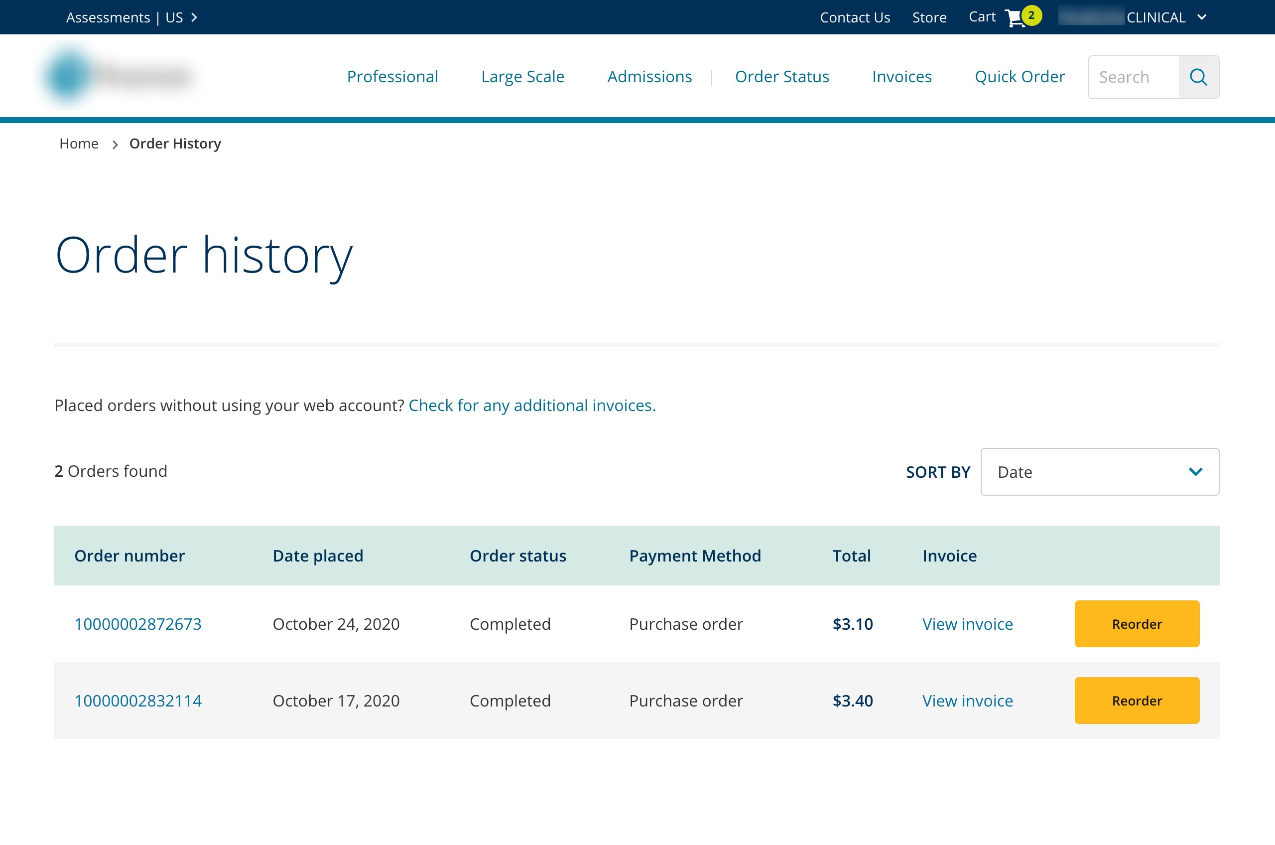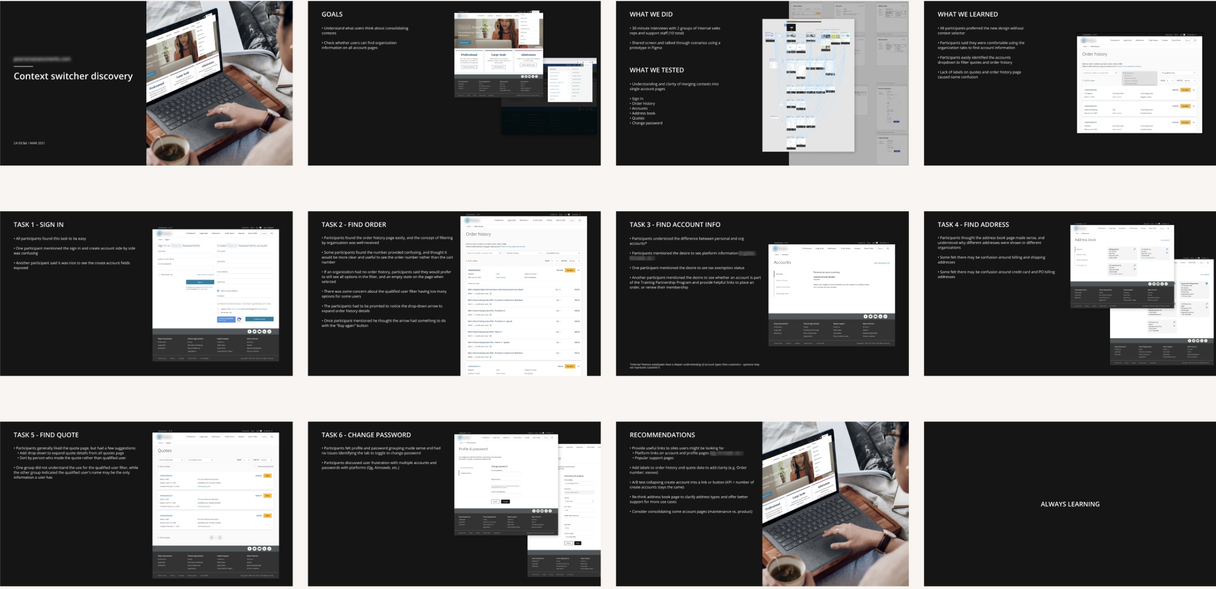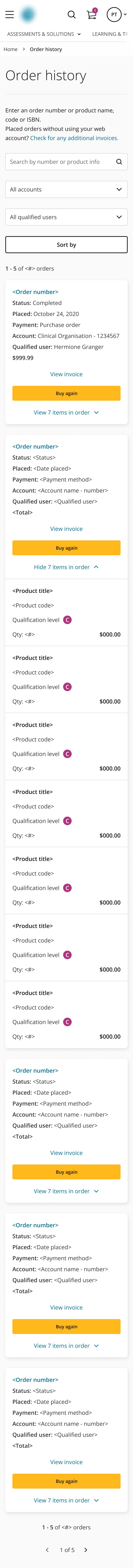Assessments e-commerce supports both B2B and B2C purchases. Users often placed orders under the wrong account, resulting in misplaced order histories and frequent customer support calls.
